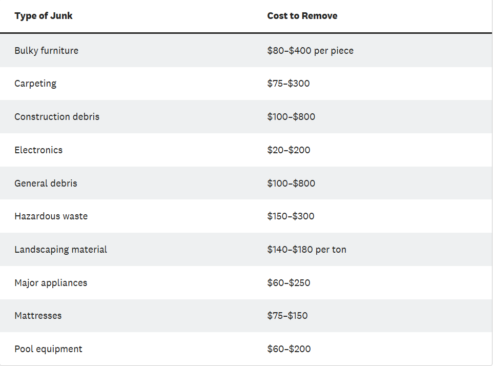 Junk removal pricing in the industry typically depends on several factors, including the volume and weight of items, type of materials, difficulty of removal, and travel distance. Most companies provide free estimates based on an on-site assessment or detailed description of the items. Some services charge by volume (quarter truck, half truck, etc.), while others price by item type or weight. Dan Simms on Angi provides examples of average pricing for common junk removal items:
